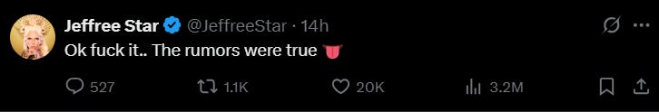 A long-dismissed rumor linking rapper Kanye West and beauty mogul Jeffree Star has resurfaced after Star tweeted on April 22, 2025, “Ok f*ck it.. The rumors were true.”