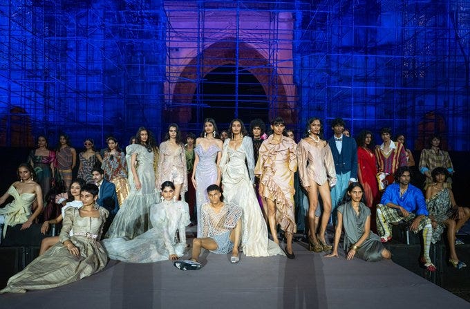 Celebrating India’s rich textile heritage, the collection showcased Indian silks, Khadi cotton, and wool, with support from the Maharashtra Textile Department, Vivz Fashion School, and HSBC India.